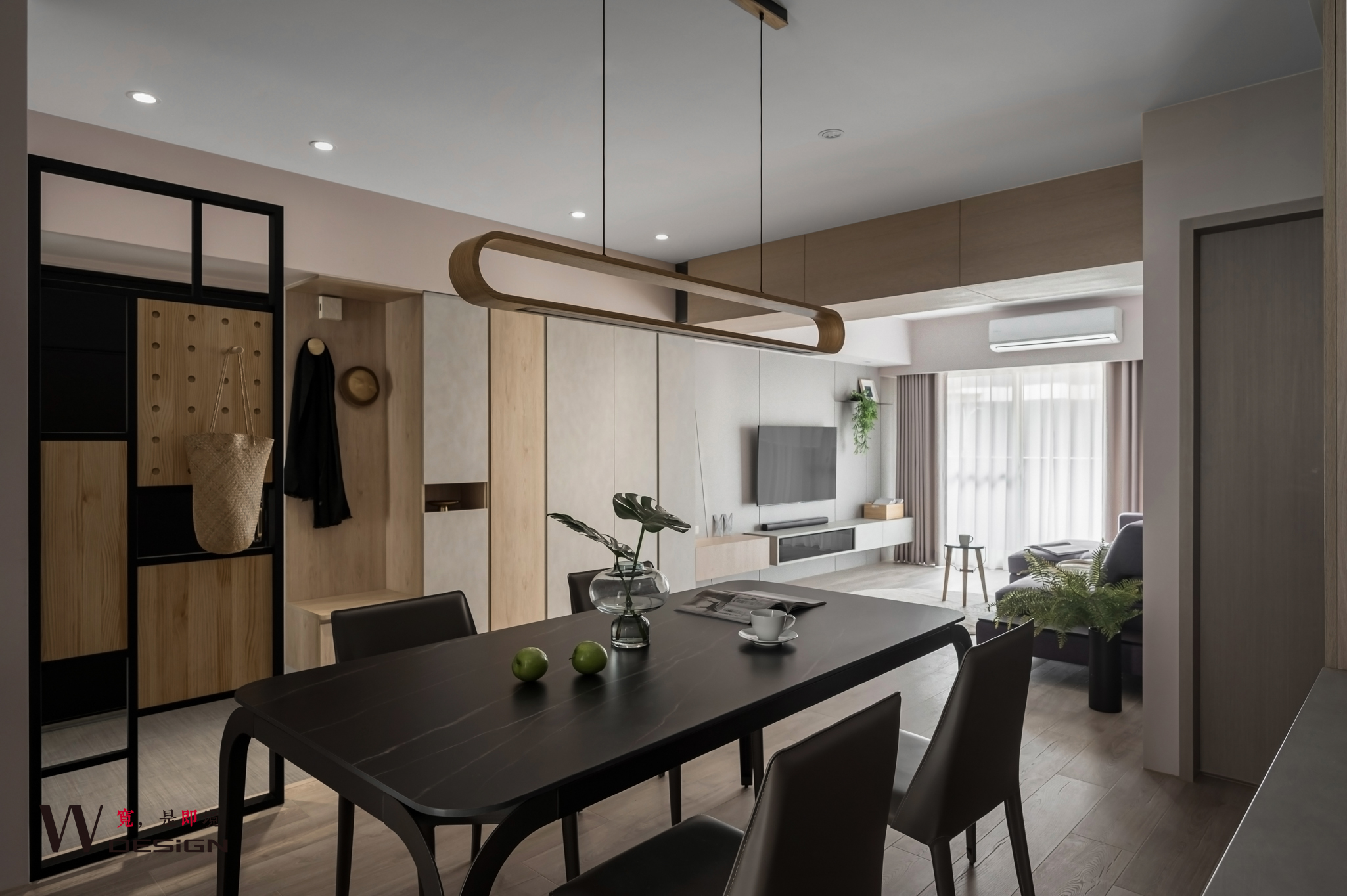 主要建材:天然木皮板、裝飾板、Egger板材、鐵件、洞洞板、灰鏡、色板玻璃、超耐磨木地板、PVC地磚